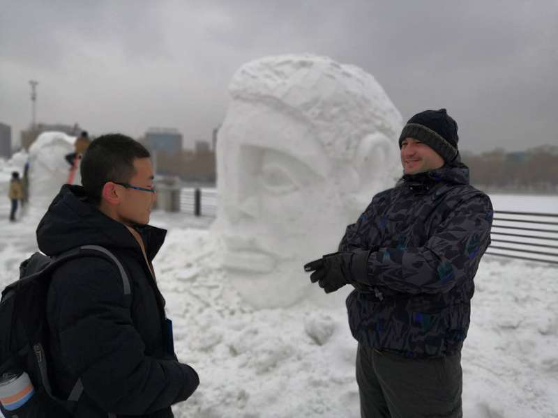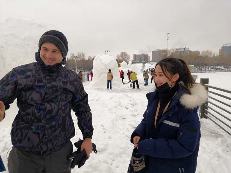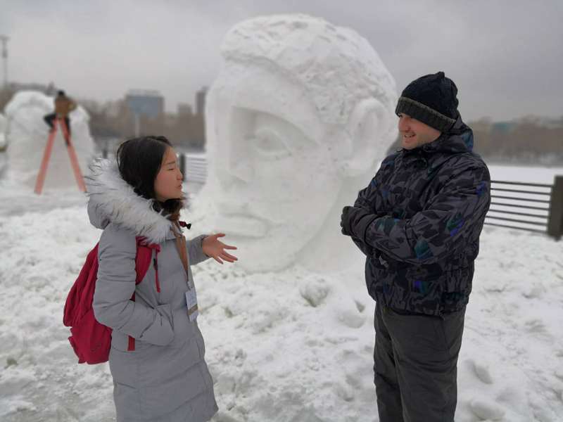新闻网讯(通讯员高鹤)在全世界辞旧迎新之际,w88win优德木兰国际交流志愿者协会志愿者们赴长春国际雕塑公园,为“冰雪缘,雕塑情”第三届中国长春国际冰雪雕塑邀请展担任现场口译。